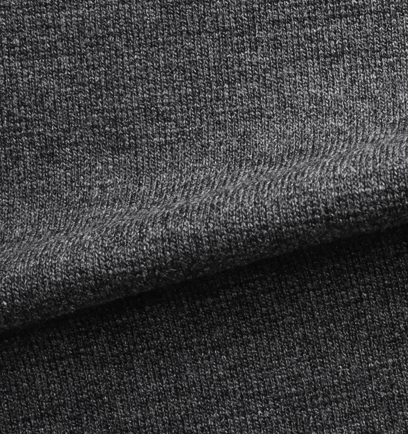필링 발생을 극한까지 줄인 MVS 레이온 실을 사용한 니트. 기모가 거의 없는 깨끗한 표면감이 특징입니다. 약간 얇고, 적당한 드레이프감과 부드러운 촉감, 그리고 레이온의 고급스러운 광택과 적당한 신축성을 가진 소재입니다.