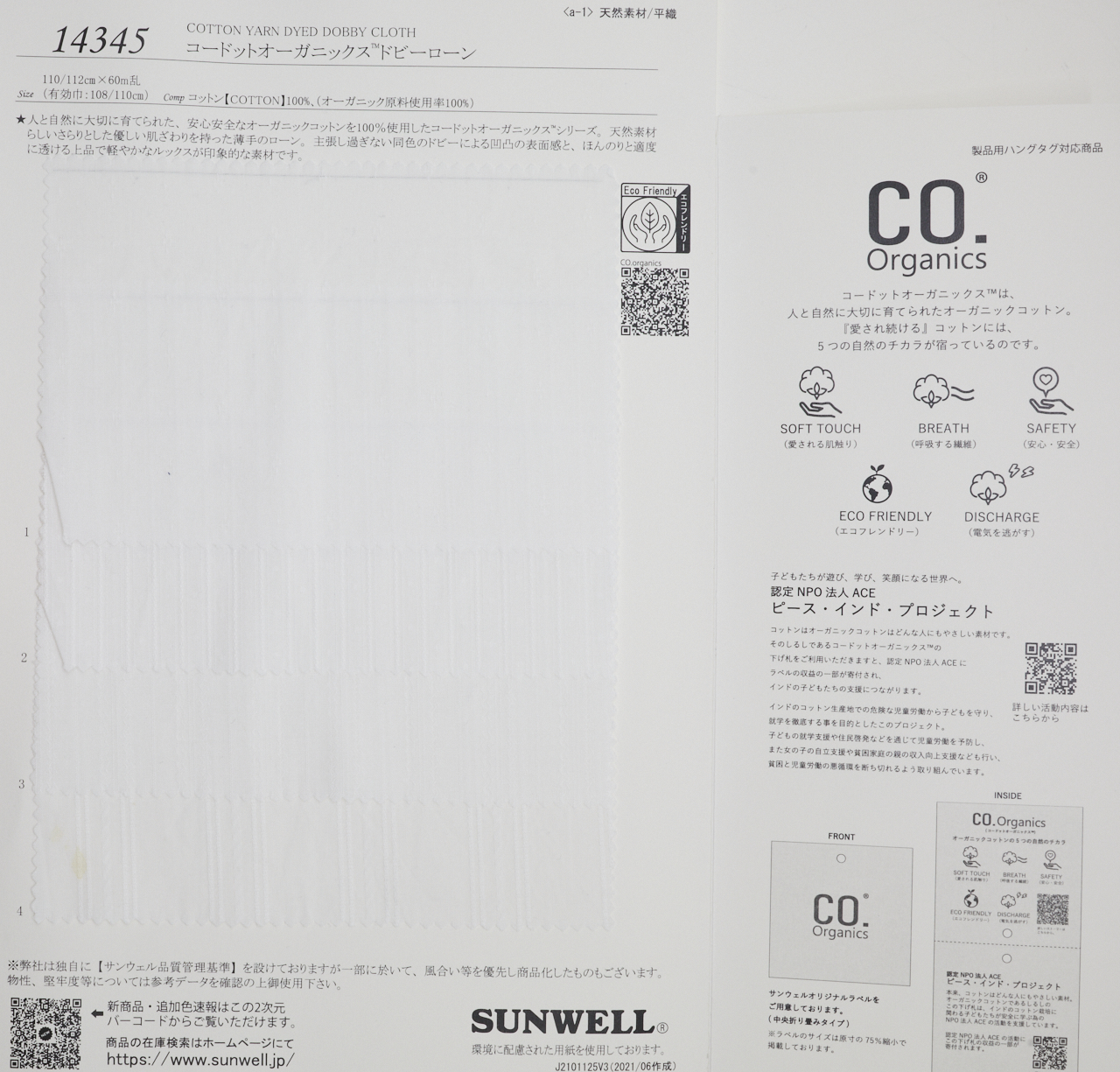 코도트 오가닉스® 시리즈는 사람과 자연을 존중하며 정성스럽게 재배된 100% 안전하고 신뢰할 수 있는 오가닉 코튼으로 제작되었습니다. 이 가벼운 로운은 자연 소재 특유의 부드럽고 매끄러운 질감을 가지고 있습니다. 동일 색상의 도비의 미묘하고 불균일한 표면 질감과 적당한 투명도가 이 소재에 인상적이고 우아하며 가벼운 느낌을 줍니다.