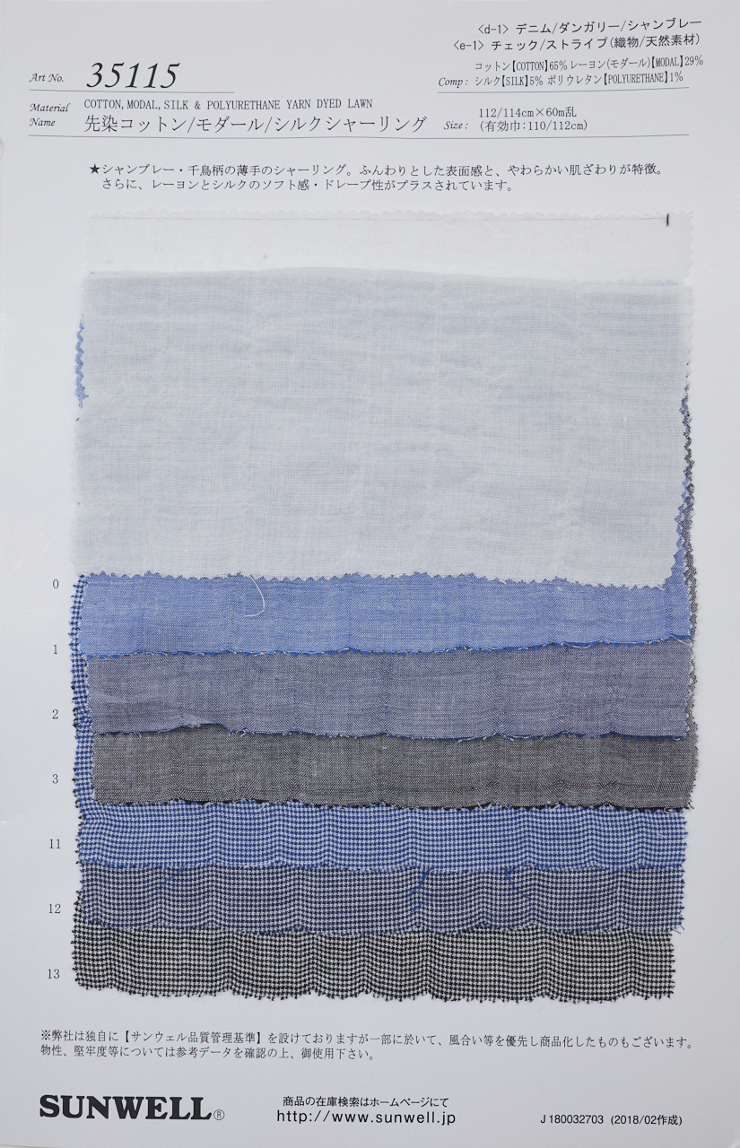 35115COTTON RAYON SILK&POLYURETHANE YARN DYED LAWN