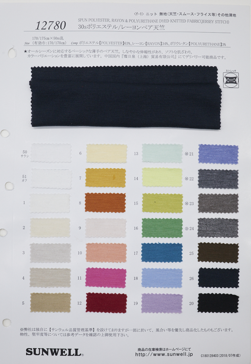사계절에 대응하는 기본적인 얇은 베어 천축. 유연한 신축성과 부드러운 촉감. 다양한 컬러로 전개됩니다.
