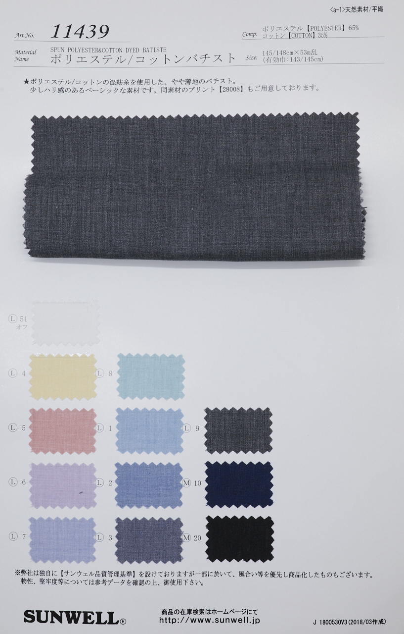 11439SPUN POLYESTER&COTTON DYED BATISTE