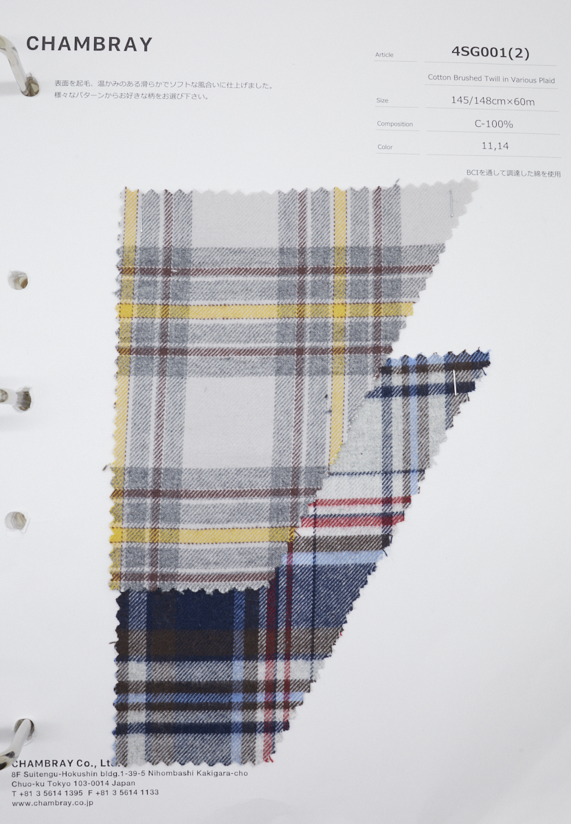 4SG001(2)Cotton Brushed Twill in Various Plaid
