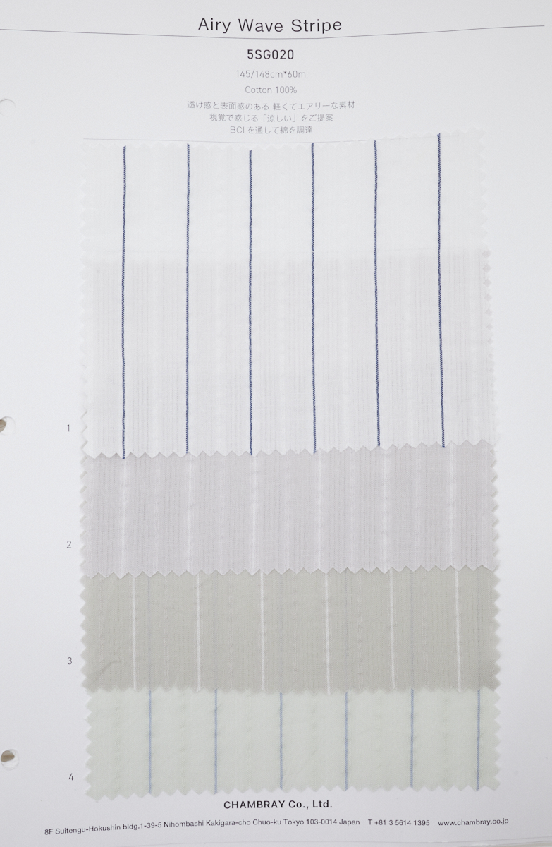이 원단은 가볍고 통기성이 뛰어나며, 시원한 착용감을 제공합니다. 스트라이프 패턴이 세련된 느낌을 주며, 다양한 스타일에 활용할 수 있습니다. BCI 인증을 통해 지속 가능한 면화를 사용하여 환경 친화적입니다.