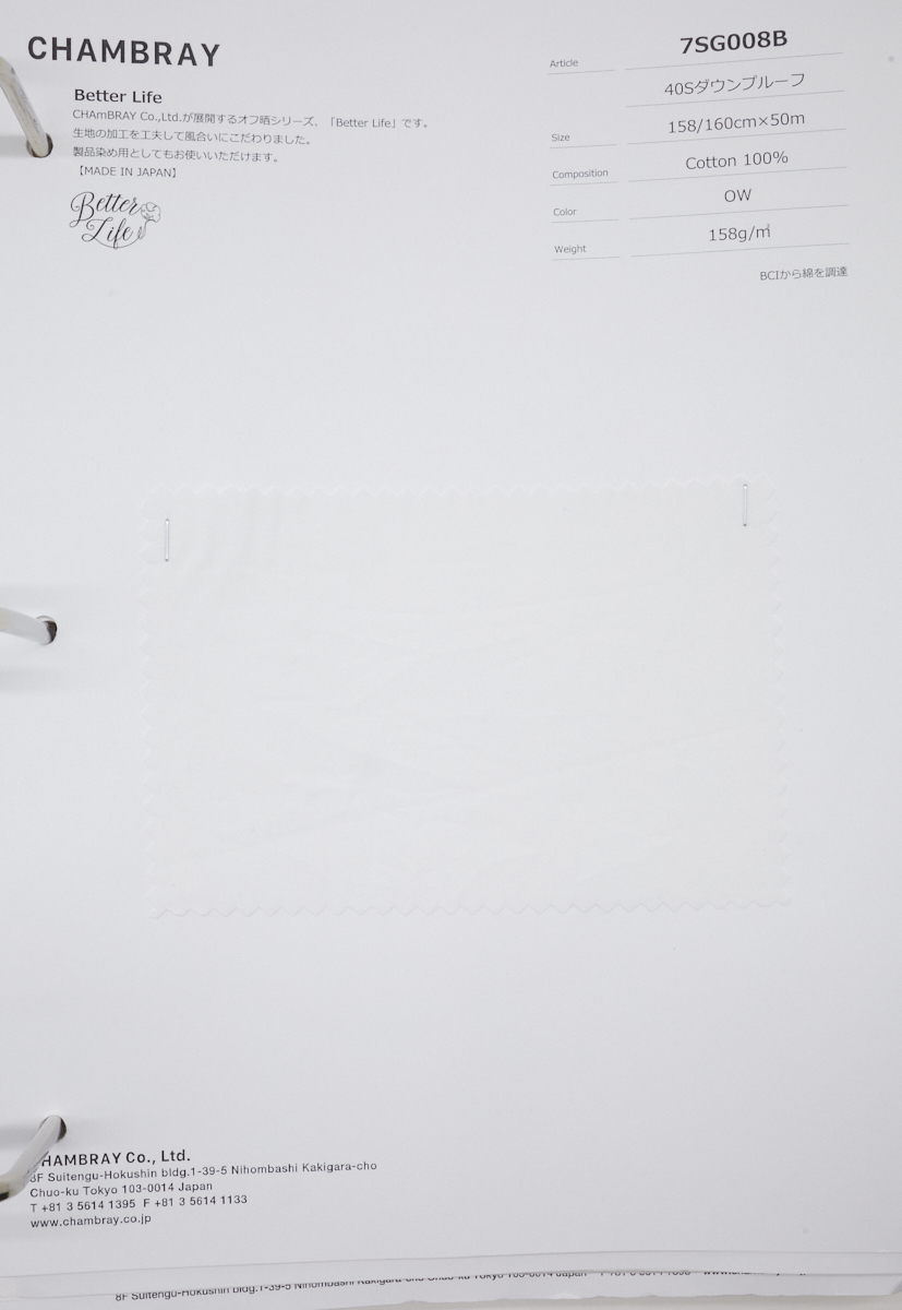 이 원단은 100% 면으로 제작되어 자연스럽고 부드러운 촉감을 제공합니다. 고급스러운 평직으로 제작되어 다양한 의류에 활용할 수 있습니다. BCI 인증을 받아 지속 가능한 생산 과정을 거쳤습니다.