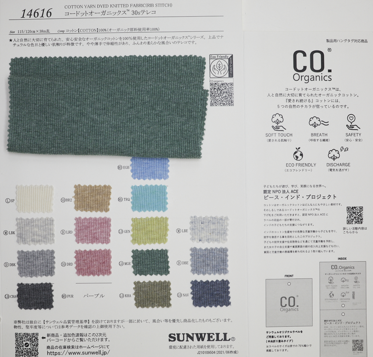 이 원단은 100% 유기농 면으로 제작되어 친환경적이며, 피부에 부드럽고 쾌적한 착용감을 제공합니다. 리브 조직으로 신축성이 뛰어나며, 다양한 색상으로 제공되어 스타일링에 용이합니다. 통기성이 좋아 여름철에도 시원하게 착용할 수 있습니다.