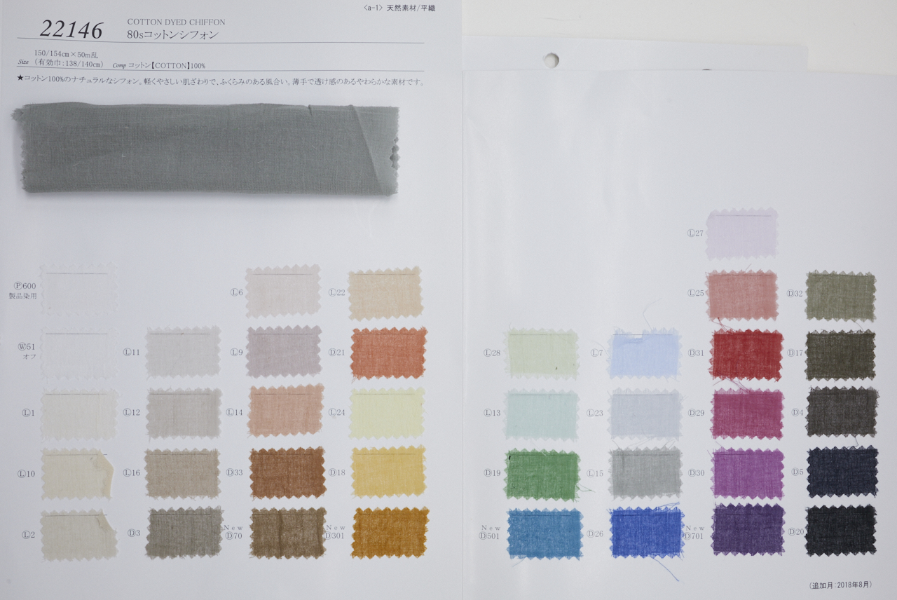 코튼 100%의 자연스러운 시보감이 인상적인 쉬폰입니다. 가볍고 부드러운 촉감에 적당한 비침이 있는 얇은 소재입니다. ☆☆ 이 제품은 텍스타일 스톡을 이용할 수 있는 '제균·항균 가공 NANOFINE®' 주문에 대응합니다.