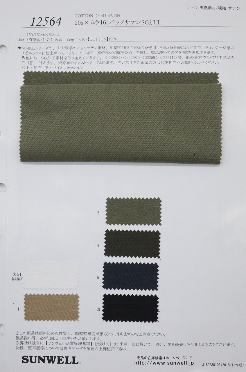 SG 가공 시리즈의 약간 두꺼운 백 새틴 소재입니다. 조직에서 16번 수의 무라를 사용한 가로 실을 겉으로 내어 빈티지한 느낌을 연출했습니다. SG 가공(염료 염색/안료 염색)을 통해 제품 세탁 시 빈티지한 느낌을 표현할 수 있습니다. ※ 다른 SG 가공 소재도 준비되어 있습니다. <22209> 다른 소재에서도 SG 가공 제품을 제공하고 있습니다. ※ 원단 상태로 재고를 보유하고 있으며, 세탁 가공을 원하시는 경우 영업 담당자에게 문의해 주세요. <위: