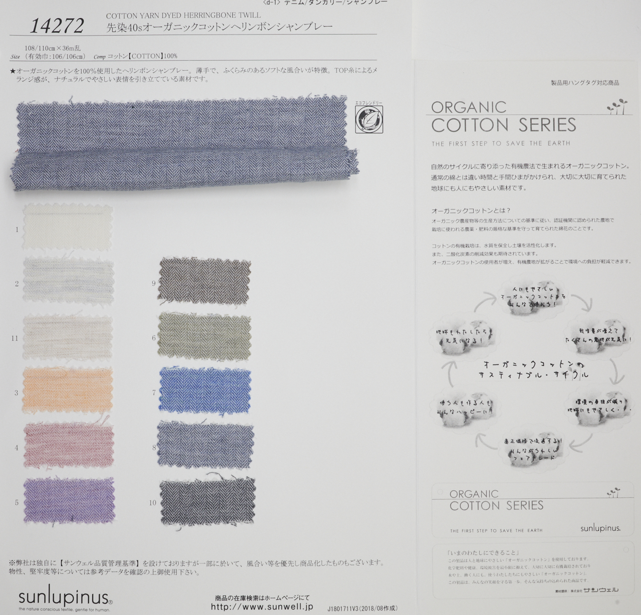 사람과 자연의 소중한 관리 속에 자란, 안전하고 신뢰할 수 있는 오가닉 코튼 100%로 만든 코드코트 오가닉스® 시리즈입니다. 얇지만 부드러운 질감과 볼륨감이 특징인 헤링본 샴브레이입니다. TOP 원사가 만들어내는 멜란지 효과가 자연스럽고 부드러운 느낌을 더욱 돋보이게 하는 소재입니다.