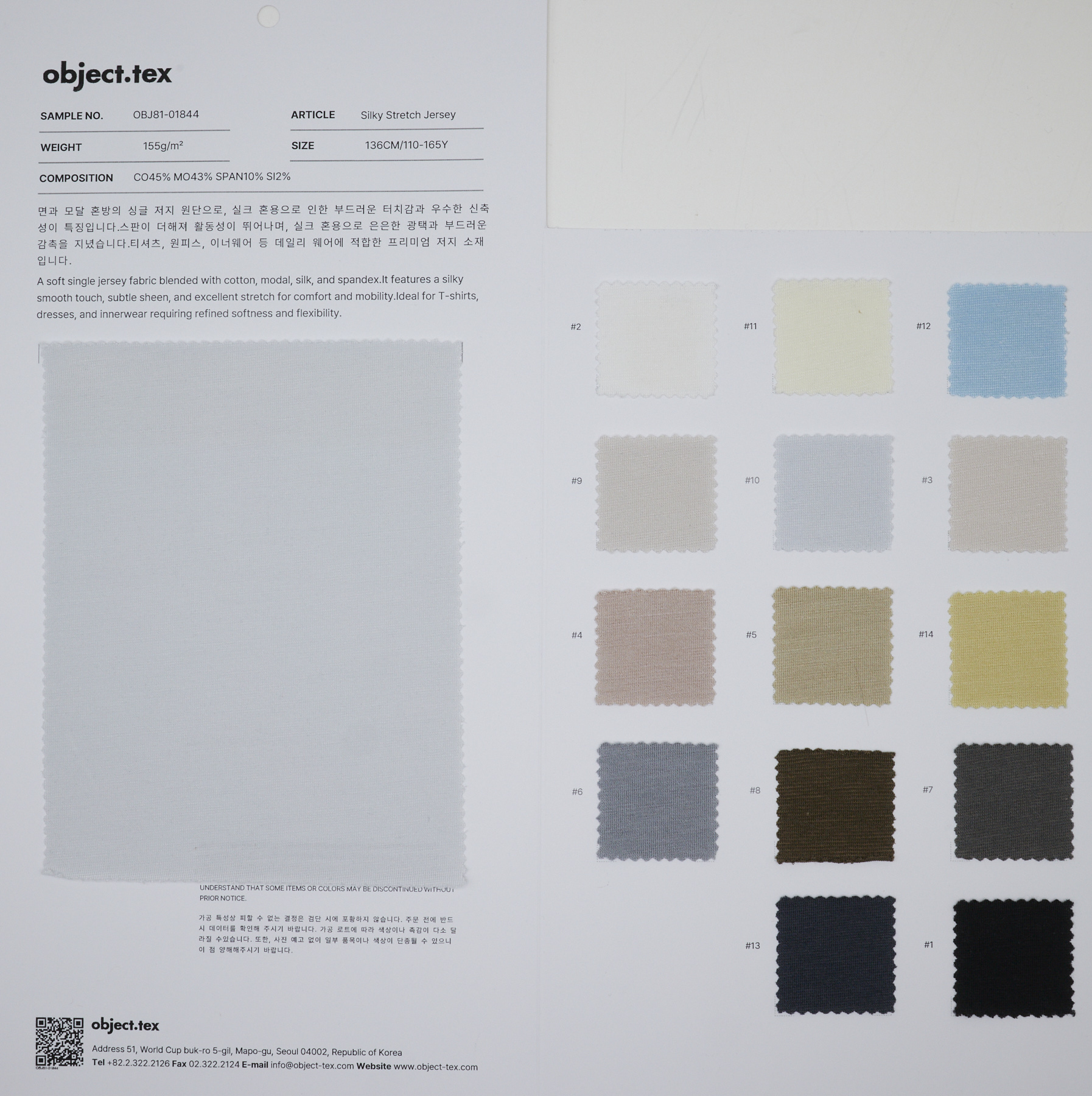 Cotton 45%Modal 43%Spandex 10%Silk 2%