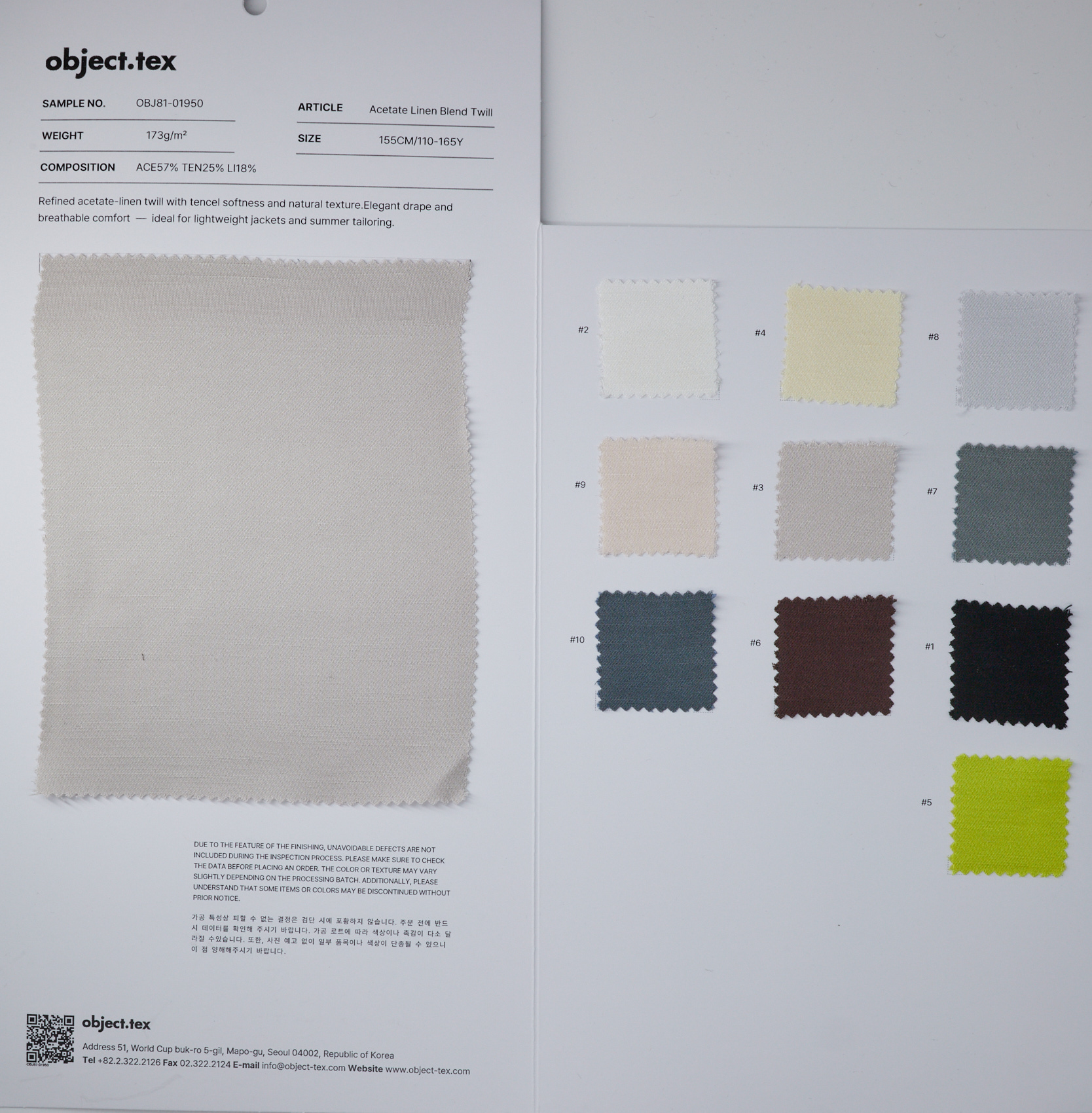 아크릴 57%, 텐셀 25%, 린넨 18%