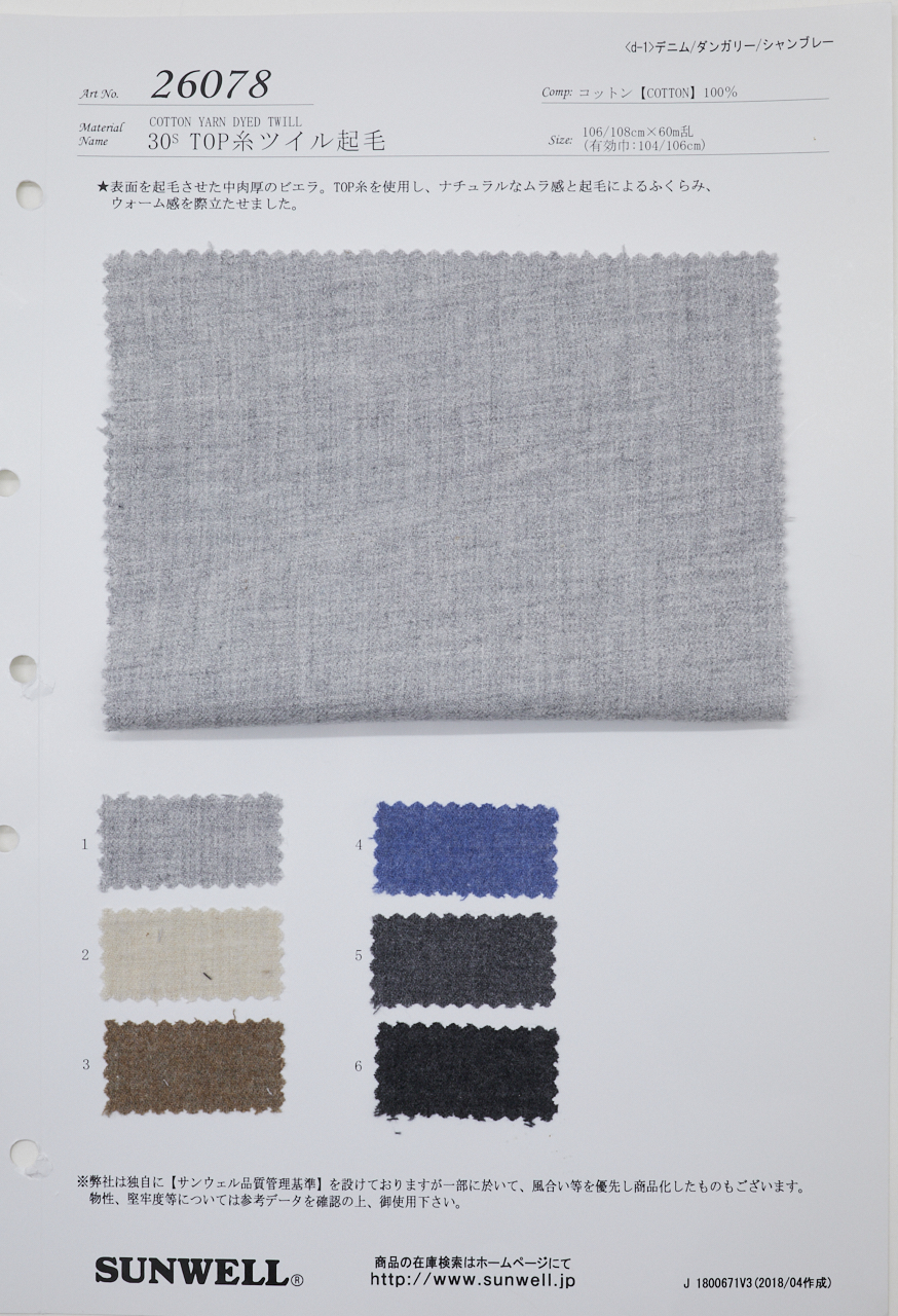 표면을 기모 처리한 중간 두께 비에라. TOP 실을 사용해 자연스러운 무라감과 기모로 인한 부드러움, 따뜻함을 강조했습니다.