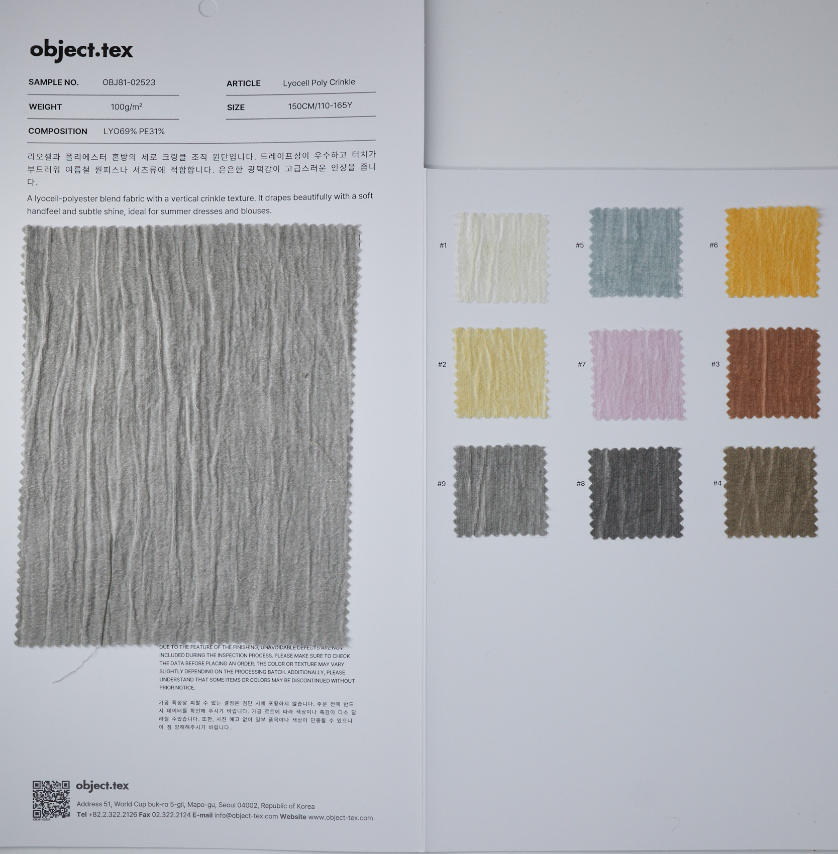 라이오셀/리오셀 69%, 폴리에스터 31%