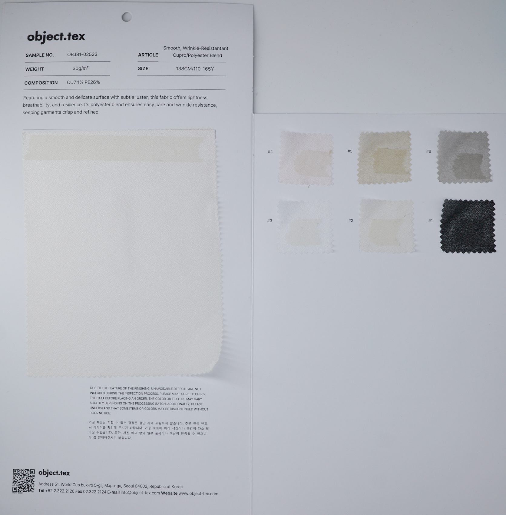Cupro 74%Polyester 26%