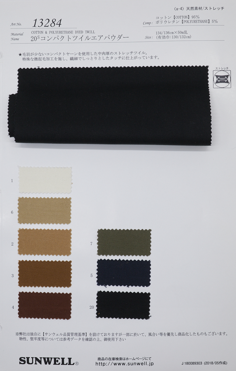 보풀이 적은 컴팩트 원사를 사용한 중간 두께의 스트레치 트윌. 특수한 미세 기모 가공을 통해 섬세하고 부드러운 촉감을 자랑합니다.