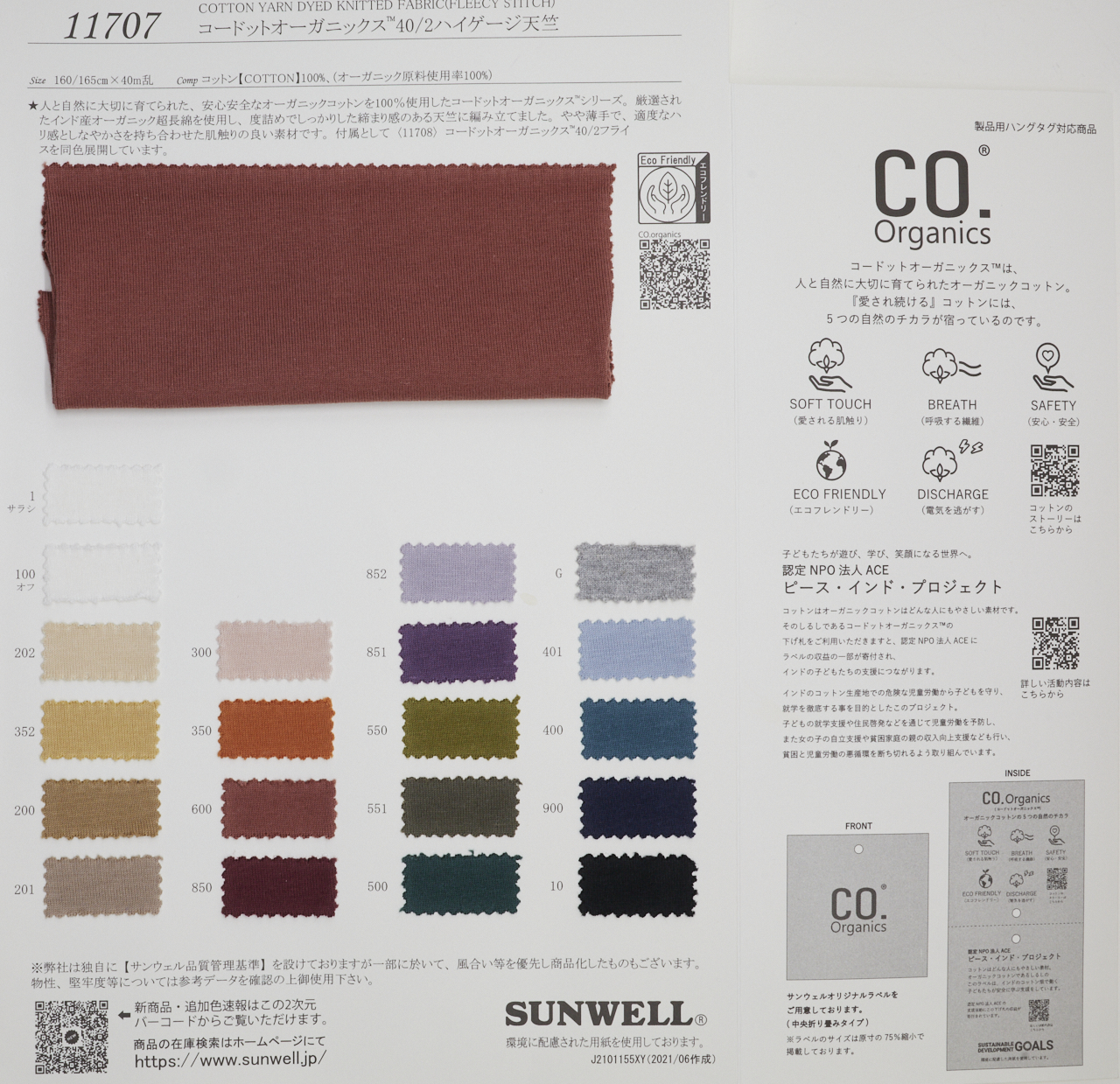 코도트 오가닉스® 시리즈는 사람과 자연을 존중하며 정성스럽게 재배된 100% 안전하고 신뢰할 수 있는 오가닉 코튼으로 제작되었습니다. 인도의 엄선된 오가닉 초장면 코튼을 사용하여 짜여진 이 소재는 살짝 얇고 적당한 탄력과 유연성을 지니고 있어 촉감이 쾌적합니다. 부속품으로는 동일한 색상의 코도트 오가닉스® 40/2 플리스(11708)도 포함되어 있습니다.